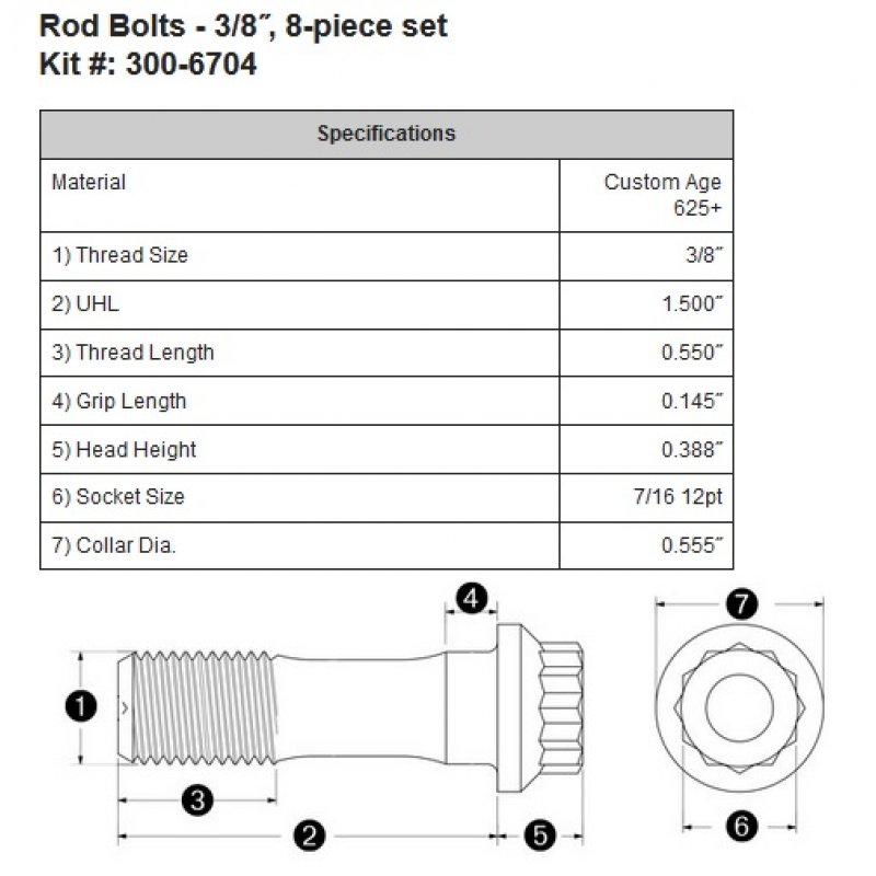 Replacement Rod Bolt Kit - 3/8?, 8-piece set.